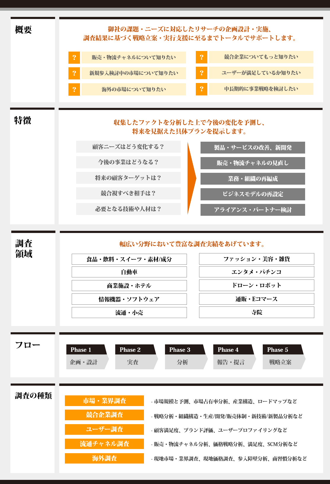 業界のファクトを多角的に分析した上で変化の兆しを捉え、未来を予測します